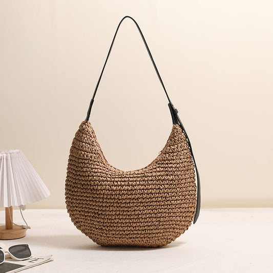 Fashionable Irregular One-Shoulder Straw Beach Bag